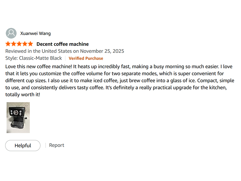The brewing quality is stable, and the design feels premium. Our customers love it!